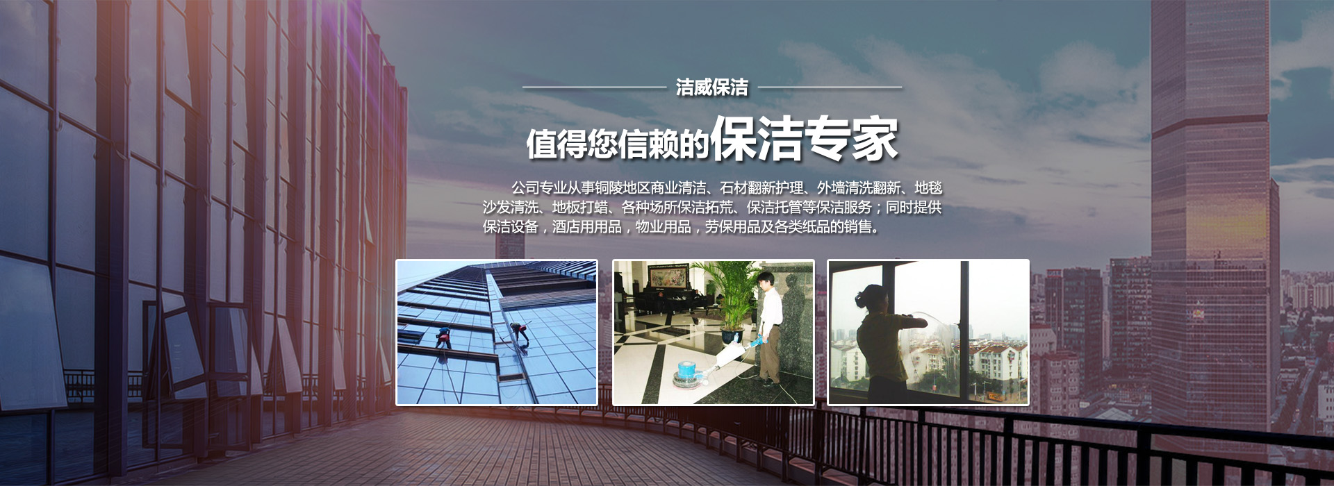 銅陵潔威保潔公司努力打造銅陵保潔行業(yè)的優(yōu)質(zhì)服務(wù)。您的滿意,我們的追求,潔威公司竭誠為您服務(wù) !